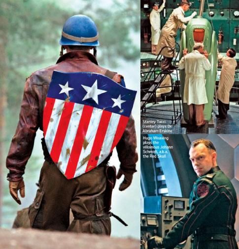 The year is 1942, and Steve Rogers is a scrawny lad who desperately wants to fight Nazis for his country but can’t because he’s been deemed physically unfit. His fate — and his physique — is radically transformed when he signs up for Project: Rebirth, a secret military operation that turns wimps into studs using drugs and assorted sci-fi hoo-ha. There’s a love interest (Major Peggy Carter, played Haley Atwell), there’s a sidekick (Bucky Barnes, played by Sebastian Stans), and there’s the Red Skull ( Hitler’s treacherous head of advanced weaponry, whose own plan for world domination involves a magical object known as The Tesseract.